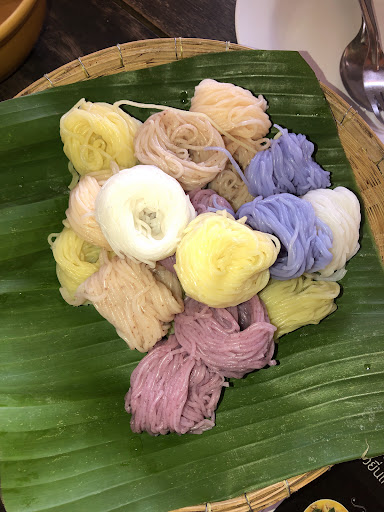 A "Ka nom jeen" restaurant, Thai tradition noodles is located in Phetchabun province. All color of Ka nom jeen is made by natural materials such as pumpkin, pandan leaves and blue pea. There're 3 curry taste : sweet, spicy and one I don't know it. It has a good smell with herbs, not sweet and not spicy. They also have tamarind factory here. The location is not in the city but I recommend everyone to try...
