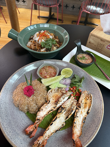 Read moreLovely Cafe next to the beach, the Cafe has a nice vibe, from the decoration, the friendly faces and the menu. We went there in a large group and the Cafe has a nice semi outdoor space, which was perfect for large group. The reception was a bit small, so it was crowded when ordered in large group. On their menu, there's many Thai food, international food, hybrid food as well as extensive drinks menu. I ordered their local signature sugar canes drinks which came in at 50thb. The cook meals takes a while to serve, around 15mins to 20mins, so please keep this in mind. The staff were very smiley and helpful in all kinds of areas, ranging from help with parking, choosing what to...