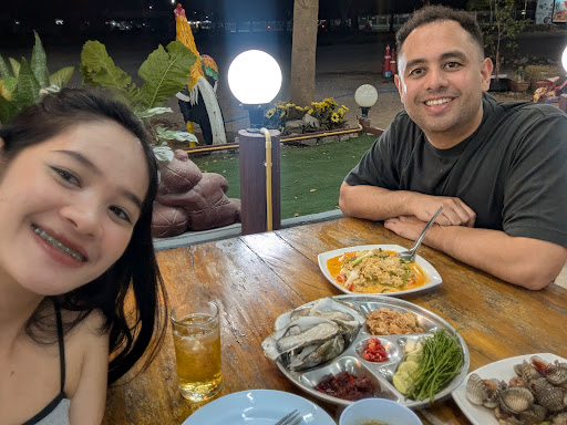 We spent just under 2000 including beers and the service charge. Good value for such fresh seafood as we ate a lot. 3 more dishes arrived compared to the photo. We had raw oysters, 3 grilled whole crabs, crab omelette, raw clams, seafood in scrambled egg, stir fried vegetables, fried rice with prawns and beer.