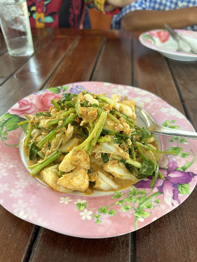 Food is also cheaper than in Cha am beach, for baht 180 we get a full plate of scallops in shell, the river prawns were done well, baht 350 a kilo with 4 big prawns. Vegetable dishes are very reasonably priced too. Fresh coconuts, baht 40, icy cold and juicy. Dining ambience may not be the best, but...
