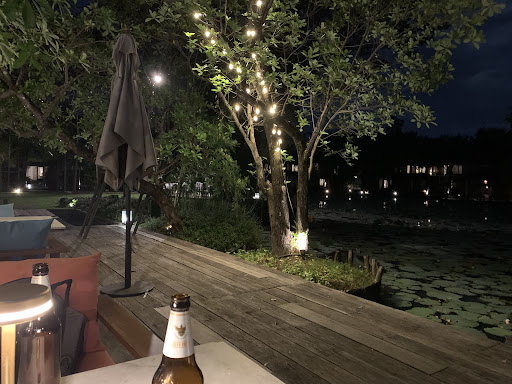 Because of the bad reviews we were a little afraid to have dinner here. The waiter proposed us the stirfried porc and cashewnuts. We both ordered that + 1 portion of french fries, inspired by another reviewer. It came all at the same time as requested. The food was really delicious! Compliments to the chef! The waiter was ever so friendly and rather saw us sit inside in the closed airconditioned dining area but we rather sat outside in the fairytale surroundings at the illuminated pond. We did put on insect repellent before dinner. That was quite useful. There were little migs. We had a...