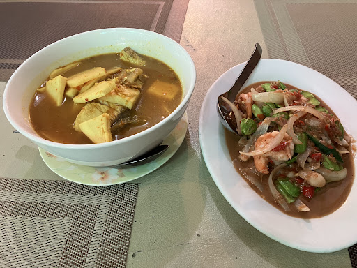 Read moreFantastic southern Thai food at a reasonable price. A pleasant atmosphere, generous seating indoors and outdoors with a car park opposite. Orders arrived promptly and staff were polite. The menu is translated to English, so non-Thai speakers should be fine. Everything we ordered was expertly prepared and delicious. Their geang som / yellow (or orange, if you're a real southerner) curry was some of the best I've had, but be warned they made it incredibly hot. Very enjoyable and healthy. I can recommend having it with prawns and papaya.