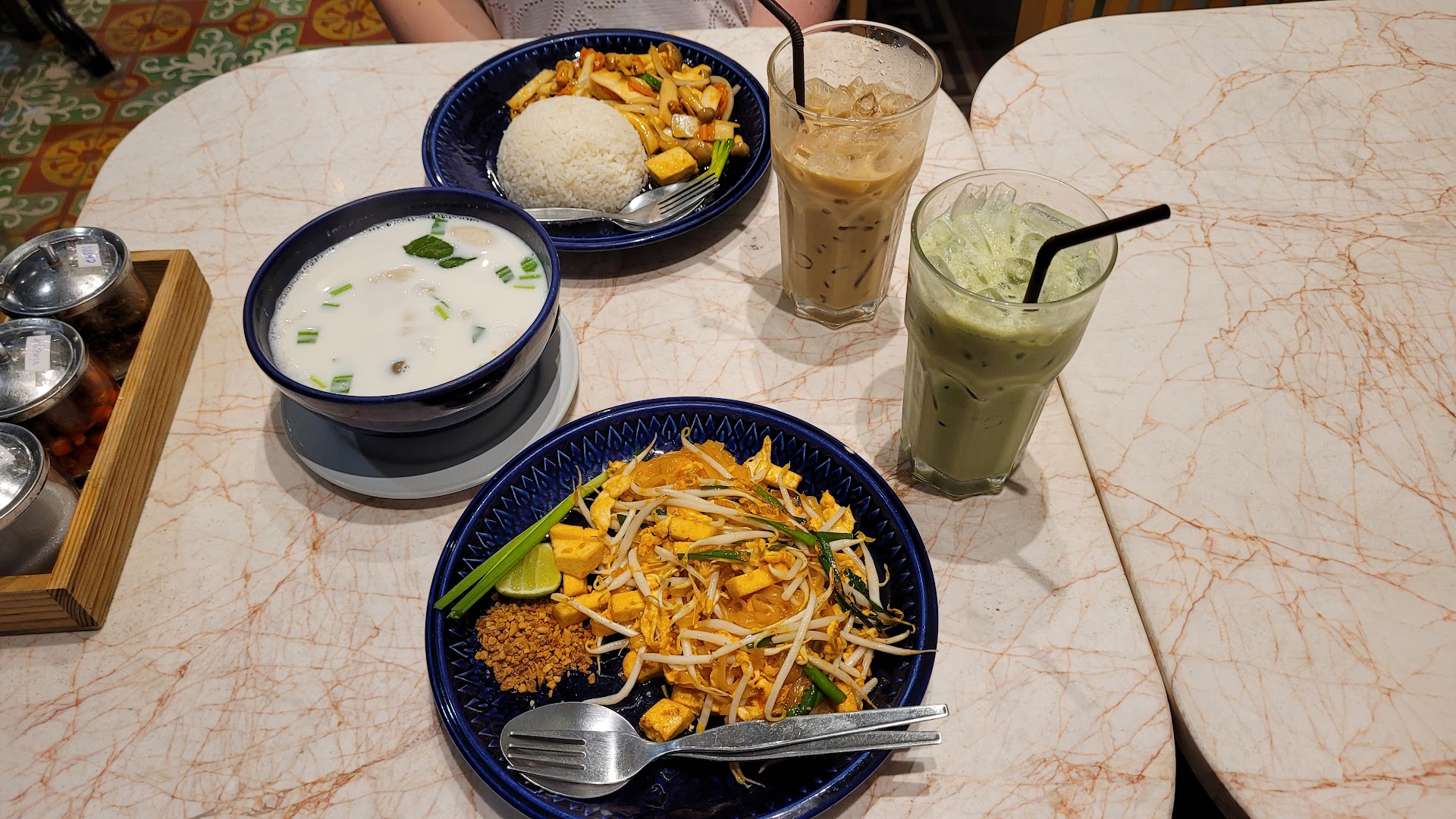 Read moreWe went here after a visit to Wat Pho, it is very close. Lucky we arrived early (12:30pm) for lunch because not long after heaps of other tourists and a tour group arrived - everyone could not be accommodated so there was a lot of people hovering around our table while they waited. Eating lunch with butts and backpacks in our face was a little bit annoying but otherwise we thought it was a great place. We had papaya salad which was EXCELLENT and a chicken basil stir fry with rice which was also nice. Our 4 year old had fried rice with chicken which (at our request) they mad bland for her and she enjoyed it. I liked that we could order the level of spice per dish. The food was inexpensive and the staff were very nice, they even gave our little girl a treat in the way out. If we are in the area again we would go...