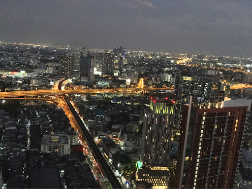 Beautiful view, nice staff, overpriced mediocre at best food. Amazing View, and the staff were very nice… But beyond that I really have nothing good to say about this place. The uninspired menu looks like it was borrowed from a sports bar. For the appetizers: Fried mushrooms fried calamari fried chicken wings, nachos. We had the calamari, and it was extremely oily and over battered, which overpowered the calamari itself. We also had the Caesar salad, and for some reason a raw egg is added, which wasn’t good in taste, nor texture. Trying to salvage the meal, I ordered the Wagu steak. One each for myself and my date. She requested medium, I requested medium+ They both came back medium well… And the quality of meat was nowhere near what wagu should be. Tough, way too much fat, dry, and the carrot purée that was added to the dish, really did not go well with the meat. I was there Saturday night March 5, and more than half the tables were empty. The impression I got was this restaurant thinks it can get by and it’s view alone, but It won’t. With all the great food options in Bangkok I can’t believe this place will not last much longer. The food and menu I would say, out of five stars I would give less than one. The only reason the overall score was 2/5 was because the staff were very nice, and as we were almost climbing into the elevator, Amy, (who is either a hostess or a manager) asked us how our meal was… And I gave her the truth. She was very receptive to our criticism, and seemed sincere in her desire to improve things here. I hope the owner and management listens to her. This restaurant needs to scrap everything, and completely start over… Or it will not survive. Way over priced, terrible food, executed very poorly, and was three times the price it should be. We had a nice bottle of wine, and I was on the first date, so I just rolled with it… And me and my young lady had a good time even though dinner was a complete bust Go for the view, have a drink, but go eat...