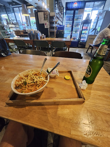 Wow first time there and was super surprised i would like it. Was recommended by thai language teacher because i asked him if he knew a place that served good khao soi. So I already knew what I wanted and the lady took me request and I sat down and grabbed a bottle of chang and bottle of water while waiting for my khao soi. When I ordered i asked her to make it spicy but she said the condiments were already on the table. When my bowl came out I will admit it seems like a rather small bowl. The taste had a little sweetness, balanced flavors of salt and ok spice, and a somewhat thin broth. I got the khao soi beef and the beef was thinly sliced and just ok if im being honest. After I added more table chili oil and a splash of fish sauce the flavor turned out amazing. If I am nitpicking I would prefer a slightly bigger bowl, better cuts of beef, and thicker broth.