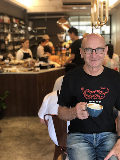 Read moreKaro’s passion and knowledge of coffee is unmatched. He always carries several varieties and his team can make any delicious coffee drink. They have delicious sweets made locally. On a recent visit, my companion couldn’t resist ordering a second slice of their lemon cake! It’s in the heart of Bangkok’s Phra Khanong neighborhood on Sukhumvit 71 (Pridi Banomyong), Soi 26. It’s an easy motorcycle taxi or songchaew ride from Sukhumvit Road, or grab a taxi, or get a Grab Car, from the Phrakhanong or On Nut BTS stations, or enjoy a half-hour walk if it’s not too hot. Probably, you won’t be the only customer like in some coffee places; there’s a lot of friendly people there even at odd times. If you own a coffee shop, they roast coffee in an impressive setup on the back of the shop, and they’d love to have your wholesale business too.