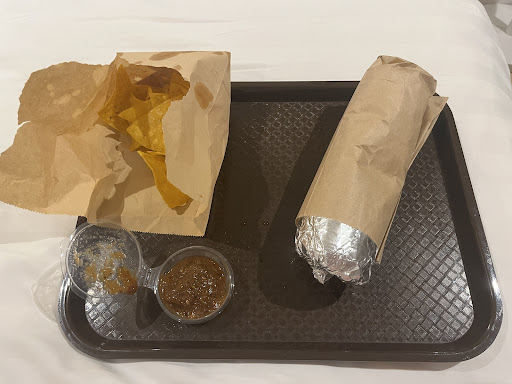 i ordered a veggie burrito, chimichanga style with a size of chips and salsa and it was phenomenal! the burrito was HUGE, smothered in salsa roja and shredded cheese. it was stuffed with refried beans, rice, jalapeños, and assorted vegetables. delectable, i say! the flavours were well balanced, it had just the right amount of spiciness and the chips were crisp and fresh, and not oversalted. 10/10 for this establishment, i wish i had tried it sooner because up until now i’ve been painstakingly making my own tacos, and hunting down my ingredients in asia. can’t speak for in house dining service, but i received my order quickly through delivery and everything was...