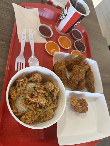 Read moreI recently visited KFC and tried their meal set which included fried chicken, rice with chicken topping, and a drink.