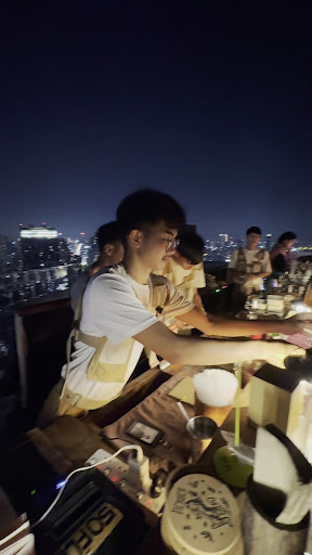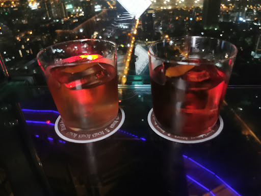 The system for purchasing drinks is a bit unique. You buy your drinks on the ground floor and then collect them at the 45th-floor counter. After your first purchase, you can continue buying drinks directly at any of the levels. The vibe is extraordinary, and the panoramic view of the city makes it a must-visit spot.