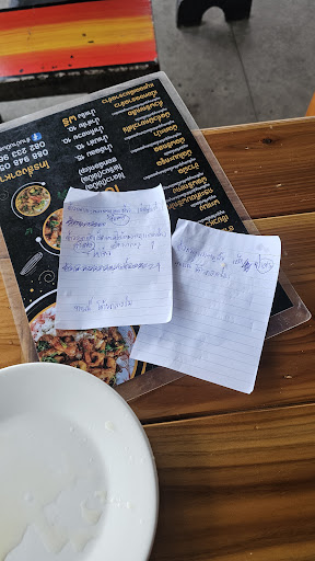 ครั้ง 2 วันเสาร์ 10.30 ไม่มีที่นั่ง สั่งไว้แล้วค่อยมาเอา เวลาผ่านไป 30 นาทียังไม่ได้ ถามพ่อครัวว่าเหลือกี่คิว พอครัวตอบไม่ได้ บอกว่าค่อยมาเอาใหม่ประมาณ 30 นาที วนกลับมาเอาใหม่ ยังไม่ได้ และเห็นว่าคนที่มาจดคิวที่หลังนั่งกินที่ร้าน กินเกือบเสร็จแล้ว พอทวงถามคิว แม่ครัวพึ่งหยิบมาทำตอนเราถาม เข้าใจว่าน่าจะเครียคิวหน้าร้านก่อน ไม่ยอมทำตามคิวที่สั่ง สรุปรอรวมไป 1.30 ชม