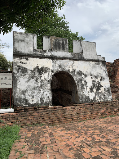 Pom Phet is located at the confluence of Chao Phraya River and Pa Sak River ( east bank of Khlong ( canal ) Nai Kai ),on the southeastern area of city island, on Uthong Rd., Tambon Pratuchai, Amphoe Phra Nakhon Si Ayutthaya, Chang Wat Phra Nakhon Si Ayutthaya. This was a left over fortress ( the other was “ Pratu Kao Plauk Fortress “ or “ ป้อมประตูข้าวเปลือก “ ) of totally sixteen fortresses along the city wall where played major role to protect the city from Burmese ‘s attacking, ended with the unsuccessful business in A.D.1767( B.E. 2310 ).In A.D. 1350 ( B.E. 1893 ), the time of Ayutthaya City ‘s establishment, the fortresses were made of woods, during the reign of King Maha Chakkraphat ( A.D. 1548-1569 or B.E. 2091-2112 ), he realized that it was the time of gunpowder and large guns to dominate the war thus to defend the city wall and fortresses were made of brick and laterite constructed on the wood base, the first conquered ( A.D. 1569 or B.E. 2112 ) by Burmese, during the reign of King Phra Maha Thammaracha ( A.D. 1569-1590, B.E. 2112-2133 ), he was allowed to construct new wall around the city so as to protect city from Cambodia ( in A.D. 1570, east moat was dug with 20 meters of width and 6 meters of depth run along from Maha Chai fortress to meet Kaja village ( Chao Phraya River ‘s left bank on the city ‘s south area ), in A.D. 1580 ( B.E. 2123 ). Pom Phet was constructed of brick and laterite ( Pom Phet fortresses used to be built in circle- shaped under Portuguese ‘s supervises and constructed overlapped in hexagonal-shaped later on under French ‘s supervise ),targeted to inspect for the city ‘s security and unloading goods, all foreign ships could not travel up Chao Phraya River beyond this point without permission. The Pom Phet fortress consist of 16 cannons, 8 portals, 8 merlons of the basement, second floor and tower dominated the fort and countryside, a part of fortress where three bastions nearby built against the line of city wall covering the harbor area. The Pom Phet fortress serve as public park for the local people and visitors who want fresh air, relax from stress and enjoy beautiful scenery...