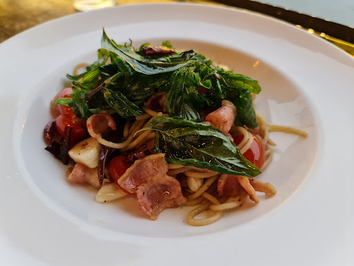 . Spaghetti roasted chilli with bacon, tasty but not so spicy. If you like crispy bacon, need to let the chef know as it came in soft version