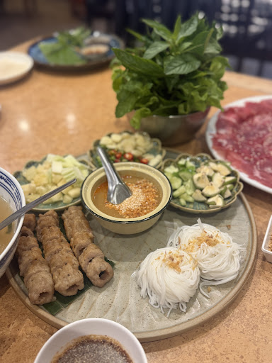 🍴 เมนูที่สั่ง แหนมเนือง ถือเป็นเมนูซิกเนเจอร์ของร้าน เสิร์ฟมาในชุดใหญ่ครบเครื่อง ทั้งหมูย่างหอม ๆ แป้งแผ่นนุ่ม ผักสดกรอบ และน้ำจิ้มสูตรพิเศษ รสชาติกลมกล่อม ออกหวานนิด เค็มหน่อย และมีความเข้มข้นพอดี เมื่อนำทุกอย่างมาห่อรวมกันแล้วกัดคำแรก ได้ความสดชื่นและอร่อยลงตัว เฝอ ซุปหอมกลิ่นเครื่องเทศอันเป็นเอกลักษณ์ของอาหารเวียดนาม เส้นเฝอนุ่มกำลังดี เสิร์ฟคู่กับผักสดและถั่วงอก เติมมะนาว พริก และซอสตามใจชอบ รสชาติซุปเข้มข้นแต่ไม่เลี่ยน ทำให้ซดได้เรื่อย ๆ อิ่มอร่อยกำลังดี แจ่วฮ้อนเนื้อ เมนูนี้เสิร์ฟมาในหม้อไฟเล็ก ๆ น้ำซุปหอมเข้มข้น รสออกเผ็ดเล็กน้อยกำลังกลมกล่อม มีผักสดและเส้นให้ใส่เพิ่มตามใจ เนื้อหั่นบางลวกพอดีไม่เหนียว เมนูนี้ให้ความรู้สึกคล้ายสุกี้เวียดนามที่ได้ทั้งความจัดจ้านและความอบอุ่นในหม้อเดียว หมูยอโบราณ หมูยอที่นี่เนื้อแน่น หอมเครื่องเทศ กินแล้วสัมผัสได้ถึงความเป็น “หมูยอแท้ ๆ” ไม่ผสมแป้งมากจนเสียรสชาติ เสิร์ฟพร้อมน้ำจิ้มพริกแบบเวียดนามที่ช่วยชูรสให้อร่อยยิ่งขึ้น เป็นอีกเมนูที่ควรสั่งติดโต๊ะ