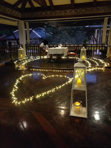 We traveled to Phuket in rainy season, so there was always a high chance it would rain the evening of the booking. You're offered the choice to postpone dinner to another day if there's a high chance of rain. We had limited time in Phuket so even though it was raining we still went ahead. Because of the rain we weren't able to sit out on the beach initially, but staff had set up a beautiful display upstairs from the hotel restaurant (see the photo). We had the entire floor to ourselves with two staff members tending to us. Felt extremely VIP! The staff were extremely attentive, professional, kind and polite. We had our first three courses upstairs whilst waiting for the rain to stop. We watched the sky turn pink and purple as the sun set and listened to the tropical rain drops beating away, always so peaceful listening to heavy rain when you're dry under cover. Thankfully, we were able to move to the beach cabana by dessert. The cabana set up was beautiful with candles and fairy lights. We spent dessert sitting watching hermit crabs crawl across the beach, listening to the waves and watching flashes of lightening intermittently illuminate the sky from the storm in the distance. So so peaceful and romantic.. We had a completely private dining experience. Couldn't have been more romantic. Thank you Thavorn for the...