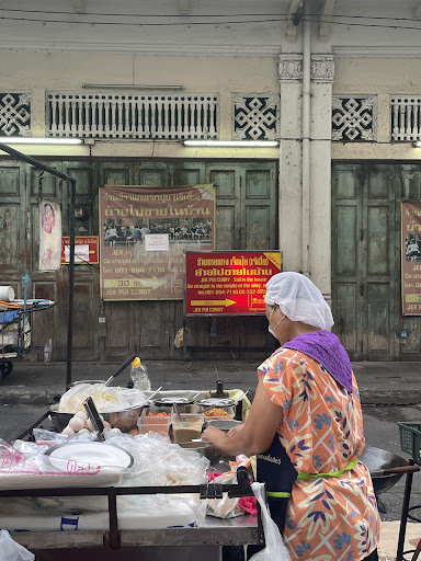 Read moreĐến quầy pad thai này là một cơ duyên của 2 vợ chồng sau khi đi dạo một vòng chinatown tìm món ăn dân dã nhất. Thật sự đây là 'căn duyên' kì diệu tại đất nước linh thiêng này khi chúng tôi lại ghé vào được tiệm của cô, trông bên ngoài rất là bình dân, ko nhận ra đây là 1 xe bán pad Thai, nhưng ko hiểu sao chúng tôi lại bị thu hút và ghé vào bởi mùi thơm, tôi ngạc nhiên trước sự chuyên nghiệp tay nghề qua thao tác đảo chảo của cô, thầm nghĩ đây chính là món mình đang thật sự muốn ăn ngay lúc này, 2 vợ chồng qua nhiều ngày trải nghiệm đủ món ăn tại Thailand nhưng trong lòng vẫn muốn trải nghiệm cái chính gốc nhất của người dân Thai, nên dù chờ hơi lâu nhưng đối với vợ chồng tôi thì việc đứng quan sát cô xào pad thai cho các đơn đặt trước, cho người tài xế, cho bác bảo vệ thì đây cũng là một trải nghiệm đời sống chân thật và thú vị. Và rồi đơn chúng tôi cũng tới, 2 đơn cuối cùng, đến nỗi cô phải đổi sợi pad thai gốc sang sợi bún nhỏ cho vợ tôi, tôi mới biết dc pad Thai ko đơn giản chỉ là sợ hủ tiếu lớn, mà có thể biến tấu sang sợi bún nhỏ, sợi mì, sợi miến, thật thú vị. tôi thật sự thích cái cách đóng gói món pad thai của cô (chúng tôi take away), sau khi chế biến dĩa pad thai hoàn chỉnh sẽ được bày gọn trong 1 tấm giấy chống thấm và gói lại thành 1 túi. (với người không thích đồ ăn xào chiên bỏ vô hộp, túi nhựa thì cách đóng gói này là 1 cách rất tinh tế, hiệu quả và đẹp mắt theo cách dân dã nhất mà khó thấy ở nơi nào khác với các món chiên xào). Do ăn trễ nên khi mở túi pad thai ra tôi thưởng thức một cách biết ơn và tâm đắc nhất, rất ngon rất hợp vị và rất Thái Lan, vượt qua hết mọi mong đợi của tôi. pad thai là món ăn rất có duyên với tôi khi tôi đã có dịp ăn từ nhà hàng nổi tiếng nhất đến vừa và bây giờ là xe bán đường phố. Tôi cá là ai cũng sẽ đồng ý pad thai của Je Pon có lẽ sẽ là Pad Thai đúng chất nhất. Cực kỳ khuyến nghị cho các bạn nào du lịch Thailand và ở gần...