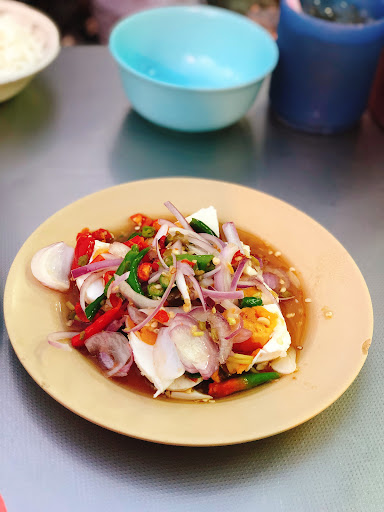Read moreVery near the station MRT Wat Mangkok, exit Plaeng Nam, instead of eating at the very touristic Chinatown area on right side, we go left side and find this place packed with local people. One nice lady speaks basic English and checks clearly with us our level of spicy and makes sure we know the dish content before validating our order where we just write down the corresponding numbers in a paper provided. We order a so yummy stir-fried moonflower dish, boiled pork with its good dipping sauce (the fat part makes it juicy), the seafood vermicelli (too fishy taste due to the pieces of smoked squid), the fresh pork blood with minced pork and a rice with mixed vegetables. During our dinner, we see a few customers ordering plum soup with homemade minced pork balls. Will try for our next visit. Good quality-price, as less than THB 500 in total, including another plain rice and a soda water...