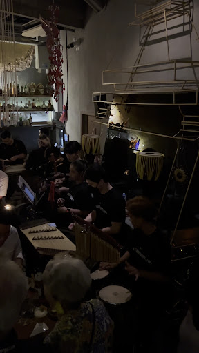 🍾Atmosphere: Rustic Charm Meets Live Thai Music The bar’s decor is styled to evoke the 'Golden Age of Thailand', featuring exposed brick, dim lighting, and antique-looking jars of Yadong (herbal spirits). This gives it a cool, mysterious, and slightly nostalgic vibe. The main attraction is the live Thai traditional music. Talented young musicians play instruments like the ranad (xylophone) and various percussions. Crucially, the music isn't just background noise—it's lively, engaging, and often features Ramwong (Thai folk dancing) tunes that get the crowd tapping their feet or even dancing along. It's an energetic fusion of old-school sound and modern socializing.