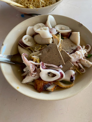 เมนูที่สั่ง เกาเหลาทะเลน้ำใส มีเครื่องหมึก เครื่องปลา พวกลูกชิ้น (จริงๆต้องมีกุ้ง แต่วันที่ไปหมด) ราคา 60 บาท บะหมี่แห้งปูกั้ง อร่อยมาก เป็นเนื้อกล้ามปู ไม่ได้เป็นก้อน แต่ให้เยอะ กั้งก็อร่อย ไม่คาวเลย ราคา 70 หมึกกระเทียม (ที่มีกั้งใส่มาด้วย) อร่อยมากก อร่อยสุดๆ กระเทียมนัว หมึกสด กั้งกับไข่ที่ปนมา (ไม่รู้ไข่อะไร) อร่อยมากกก ราคา 50 (ราคาหมึกกระเทียม) รวม 180 บาท กิน 2 คน อิ่มจุกค่ะ