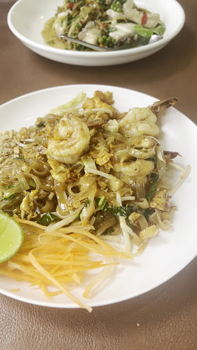 Read moreAll covered outdoor seating. The only thing that bothered me about this place was the proliferation of mosquitoes that kept landing on me, and the line of ants that decided it would be fun to crawl up my leg. I know it’s not really the restaurant’s fault, but it is was a reality that bit into my dining experience. It is what it is. Service was prompt and there is a huge amount of seating. We sat down and the guy handed us menus, went to go and get the ice water we requested. He quickly returned and stood by our table, pen poised to pad, to wait for us to peruse the menu and make our order. I just had shrimp pad Thai because I hadn’t had it for awhile and was craving it. My girlfriend had some kind of fish with lime juice and black pepper berries. The food got there pretty quick. I was happy with how big the shrimp were in my dish. The dish was a little sweet for my taste, but I can adjust that with a request on my next visit. I wasn’t super hungry and the dish was super big, but it turned out to be just right. I had a taste of my girlfriend’s dish. I had never had it before and I found it to taste very good. This place is within walking distance of our condo and we will...