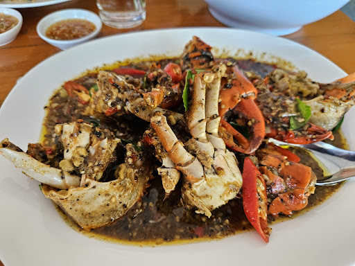 Read moreI don’t normally post reviews for a restaurant but had to for this one. Living in Texas I’ve had my share of seafood from California and Texas. Hands down I thoroughly enjoyed the food along with the ambiance of hearing the ocean. The Crustacean in Beverly Hills was always my go to for crab. For about $55 four of us had fried crab in a curry sauce, Tom Yum shrimp and Tom Yum squid along with crab fried rice, deep fried fish chips, and a new vegetable for me chokram found only in this part of Thailand. $55 gets you one crab in California 😂 Free watermelon for dessert from the wonderful staff. Located right at the entrance to a national park cave, can’t miss it. Please stop in and...