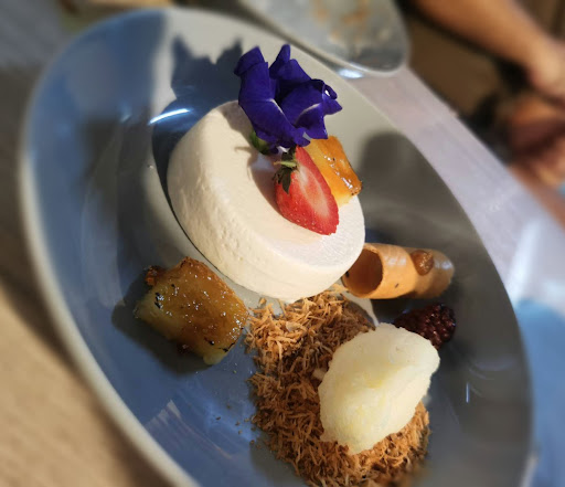 And you definitely shouldn't forget to order the Panna Cotta with pineapple ice cream. It's a truly fantastic combination of a Western dessert and Thai flavors. You won't be...