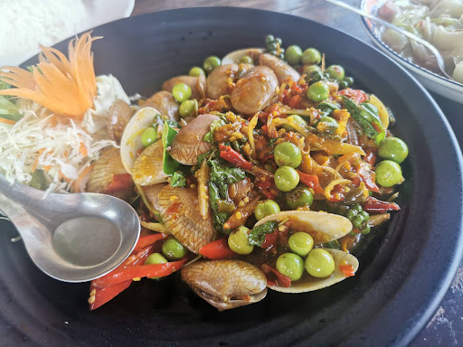 Read moreเนื่องจากว่า ติดใจโรงแรม Holiday inn ที่อยู่ใกล้ๆร้าน ขับรถผ่านไปผ่านมาหลายรอบแล้ว.แต่ไม่เคยสังเกตุเห็นร้านนี้ แต่จากการ serch google หาร้านอาหารซีฟู๊ด ในหัวหิน จะมีร้านนี้ติดอยู่ใน list ด้วย วันนี้ขับรถผ่านมา หลังจากไปผิดหวังกับร้านริมชายหาดมื้อกลางวัน เลยตั้งใจว่า มื้อเย็นต้องมาลอง เพราะขับรถจากโรงแรมมาไม่ถึง 5 นาที ระยะทางไม่น่าจะถึง 500 เมตรด้วยซ้ำ หลังจากทำกิจกรรมต่างๆในโรงแรมแล้ว เลยลองขับรถไปวัดดวงดู กะแค่ว่า ถ้าไม่อร่อยก็แค่ครั้งเดียวพอ ไปถึง น้องพนักงานต้อนรับดีมาก อาจเป็นเพราะวันที่ไปเป็นวันธรรมดา ลูกค้าเลยน้อย เลยทำให้บริการได้ทั่วถึงและรวดเร็วหรือเปล่าไม่แน่ใจ แต่ถ้าเป็นมาตรฐานแบบนี้ทุกวันอยู่แล้ว เราว่าเริ่ดมากกกกก จะบอกว่า ร้านซีฟู๊ดร้านไหนอร่อยหรือไม่อร่อย ให้ดูที่น้ำจิ้มซีฟู๊ด ถ้าน้ำจิ้มเด็ด ใช้มะนาวจริงในการปรุง จะทำให้อาหารทะเลอร่อยขึ้น 1000 เท่า อันนี้จริง แต่เนื่องจ่กวันนี้ทานอาหารเยอะมากตั้งแต่มื้อเช้า - กลางวัน มื้อเย็นจึงสั่งแค่ 3 อย่าง มาลอง เพราะกลัวใจจะเป็นเหมือนมื้อกลางวัน เมนูที่สั่งคือ หอยแมลงภู่อบ เมนูนี้ไปร้านไหนก็สั่ง แกงคั่วเนื้อปูใบชะพลู และอารมณ์อยากส้มตำ จึงสั่งส้มตำปู-ปลาร้ามาลอง พออาหารมาเสิร์ฟ ต้องบอกว่า หน้าตาแต่ละเมนูคือใช้ได้ พอน้ำจิ้มมาวางปุ๊บ รีบชิมก่อนเลย ขอบอกว่า "น้ำจิ้มเด็ดมากกกก แซ่ป หอมมะนาว"คืออร่อยเลย เป็นน้ำจิ้มที่ตามหามาทั่วหัวหินเหอะ มาเจอร้านนี้ คือตายไปเลยค่ะคุณ แกงคั่วเนื้อปูใบชะพลู ทานกับขนมจีนที่ให้มา คือรสชาติดีเลย สำหรับเรานะ ถ้าใครชอบรสจัด ขอน้ำปลาพริกเพิ่มก็ได้ มาถึงส้มตำ ถือว่าใช้ได้ นั่งทานแบบเพลินมาก ตักเข้าปากแต่ละคำ จะมีแต่เสียง อื้อหืมมมม อร่อยยยยยย อื้อหืมมมม เด็ดอ่ะ ทำไมเมื่อกลางวันไม่มาทานร้านนี้ว้าาาาาาาา