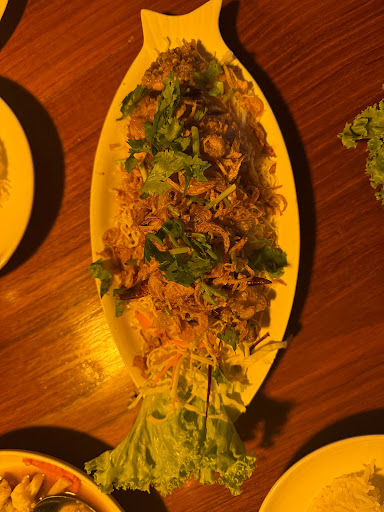 Fabulous unique restaurant just outside of Hua Hin in a lovely lakeside location. It has individual huts with either chairs or you can sit on the decking to eat. The menu is huge with extensive choices of delicious Thai food and the portions are very generous and it great to order lots of dishes and share. The staff are very helpful and cater to your needs. We went just before sunset and it was nice to see the lights come on around the lake and the change in atmosphere as it went dark. You. An also feed the fish which is a big attraction in such lovely...