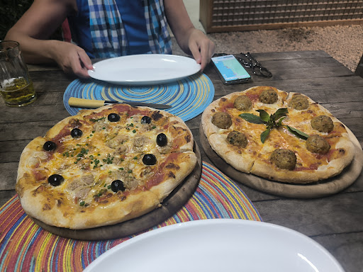 All food was OK but nothing above average. Steak overcooked, potatoes undercooked, pizza had strange sweet sauce with crust that had too much flour.