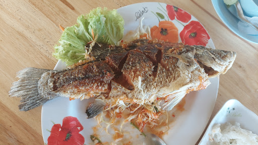 Read moreบรรยากาศริมทะเล ที่นั่งในร้านชิวๆสบายๆ อาหารรอไม่นานค่อนข้างเร็ว สั่งไป4 อย่าง ราคากลางๆ 1)ปลากระพง 8/10 ทอดกรอบดี แต่ไม่ได้ผ่า น้ำจิ้มเปรี้ยวเฉยๆ น้ำปลาราดไม่เห็น 2)ต้มยำรวมมิตรน้ำข้น 8/10 รสชาติพอได้ ขาดความข้นของนมคาเนชั่นไป เลยไม่มันเท่าไหร่ 3) ไก่ผัดเม็ดมะม่วง 5/10 รสชาติเหมือนผัดผัก มีไก่กรอบมาด้วยแค่นั้น น้ำพริกเผาไม่มีกลิ่นเลย ไม่ไปทางไหนสักทาง 4) หมึกผัดไข่เค็ม 3/10 ให้ 3 ตรงหมึกเยอะ นอกนั้นไม่ได้เลย กลิ่นไข่เค็มไม่มี เหมือนผัดผงกะหรี่อ่อนๆ ไม่ผ่านเลยเมนูนี้...