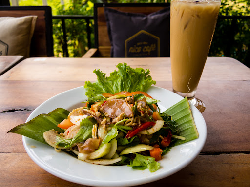 Read morePopped in for a bite after training finished at KOMT around the corner. Lovely little roadside café. There are tables outside and an air-conditioned indoor section. Comfortable seating and friendly staff. Couldn't see any charging points for laptops though. Good coffee. Very smooth. Ordered 2x phat krapow moo with three eggs. Phat khrapow was good, and they didn't hold back on the chillis; unfortunately, they managed to fry all six eggs to a crisp. 2x phat krapow moo with three eggs, 1x latte and 1x hot chocolate B390. Thoroughly...