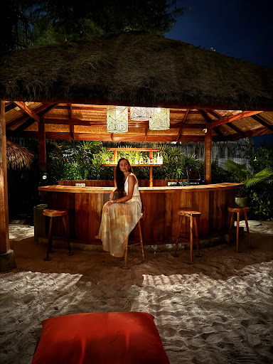 We started with pre-dinner drinks at the beach bar, which set the tone for the evening. Dinner was in the lush alfresco garden area—a relaxing, tropical setting that felt like paradise.