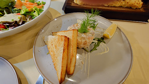 I had the crab and avocado starter and my wife had the smoked salmon. Both dishes arrived beautifully presented. The taste of the crab and avocado eclipsed the presentation. This is an amazing starter.