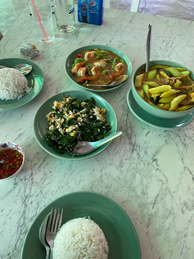 อาหารอร่อยมากกกก เราอาจจะไม่สันทัดอาหารใต้มาก แต่รู้สึกว่ารสมันอร่อยถูกปาก ราคาก็โอเค ไม่ได้แพงมาก แต่ไม่ได้ถูกมาก เมนูที่สั่ง แกงส้มออดิมปลาดุกทะเล (ราคา 250) อันนี้มาเป็นถ้วย แต่ถ้วยใหญ่อยู่ กินน่าจะได้ 3-4 คน แกงส้มเข้มข้นมากกกกก เผ็ดเค็มนัวๆ เลือกได้ว่าจะเอาเป็นกุ้งหรือปลา ส่วนตัวเพิ่งเคยกินออดิบครั้งแรก รู้สึกว่ามันเข้ากับแกงส้มมาก กรอบๆ ดูดน้ำแกงส้มไว้ พอกัดแล้วระเบิดน้ำแกงส้มในปาก (เผ็ดร้อนมาก จะตาย555555) แต่อร่อยค่ะ กุ้งผัดกะปิสะตอ (ราคา 220) เปิดประสบการณ์กินสะตอครั้งแรกอีกแล้วค่ะ เคยคิดว่ามันจะขมเลยไม่อยากกิน แต่รอบนี้ลอง สรุปคือไม่ขมเลยย มันๆอร่อยมาก อาจจะขมปลายนิดหน่อย แต่ไม่ได้ขมแบบตะโกน กะปินัวมากกกกกก หอม เค็ม นัว ที่สำคัญ กุ้ง ใหญ่เด้งหวานกรอบ ชอบเมนูนี้ที่สุดค่ะ ใบเหลียงผัดไข่ (ราคา 120) อาจจะรสชาติปกตินะ เคยกินบ่อยแล้ว แต่ก็หอมนัว แอบเห็นใส่หอมแดงผัดด้วย อร่อยค่ะ กินคู่กับกุ้งกะปิสะตอแล้วอร่อยมาก แก้เผ็ดแกงส้มได้ดี