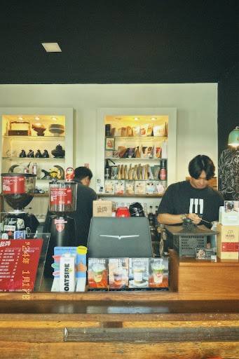 The coffee quality, as well as the diverse brewing methods, are exceptionally high. You have the choice of beans from various countries (Uganda, Nepal, Laos...) They serve a modest selection of pastries, including croissants, banana bread, lemon cake, and occasionally: homemade chocolate cookies sprinkled with sweet salt. Hmmm... The atmosphere is youthful, relaxed, and unpretentious, with stylish and unique decor - featuring a Japanese influence and surf elements. Engaging with the owners is a treat :) they possess extensive knowledge and are just passionate about what they're doing.