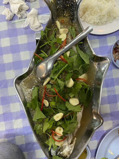 Average seafood place, not recommended.. This place is big, totally no vibe or ambiance. Staff is indifferent but fast, it’s reasonably clean, including toilets. No vibe, just plastic chairs, typical local Thai. We ordered steamed sea bass, 500 grams of medium sized prawns, morning glory, rice and a few beers. The sea bass was good and had a nice flavour, the morning glory standard and not too salty which is good. However, the prawns, for me the most important dish were overcooked and got chewy and hard, no flavour left. Compared to other seafood places in this area, it’s definitely not the best but also not worst. So I give this place 3 out of 5, mainly because the most expensive dish was totally over cooked. Not recommended to eat here....