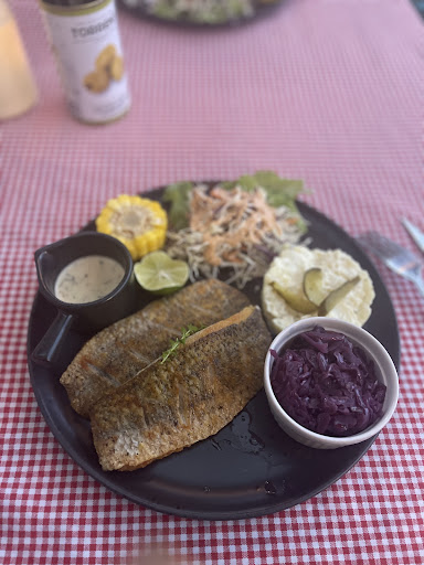 During our visit, G and I were treated to a surprising delight. He savored a flawlessly cooked medium-rare rib-eye steak accompanied by creamy potato mash and a fresh side salad, while I enjoyed a perfectly fried seabass served with a tantalizing lemon dill sauce, potato salad that even the German approved of and savory cooked purple cabbage. To conclude our meal on a sweet note, we indulged in the impeccably crafted crème brûlée, a dessert that, in my opinion, deserves the new title of the best in Hua Hin.
