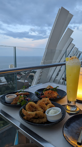 Read moreThe atmosphere is superb and stunning, particularly when illuminated by fireworks. Having your loved one(s) with you on a breezy day during sunset, sipping some drinks sounds so wonderful, doesn't it? Or, if you prefer to have adrenaline pumped into your bloodstream, just go dance on the glass panel, which could make your heart stop, especially if you are afraid of heights like me! The service is extraordinary, as it should be, considering this restaurant is located in a five-star hotel like Holiday Inn. However, that's it. When it comes to the food, it's quite disappointing. The food selections are limited, and the quality doesn't meet expectations. Moreover, the prices tend to be on the high side- too pricey, in my opinion. Don't get me wrong, I don't mind paying more if it's worth my money. But considering the food options and quality, the drinks should be the only thing you can really enjoy along with the atmosphere. However, the price tags of the drinks could easily...