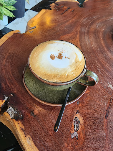 Yesterday I found the best cappuccino place compared to the last 18 months I been around Thailand. And it's near our new house. Fresh made without machine. Coffee beans manual grinded, milk warming slowly on stove. Pressing hot water through the Fresh grinded coffee manual with hand. The smell of real coffee goes throughout the place. The milk and the foam perfectly topped with some cinnamon on it. The taste remarkable perfectly you can only dream about it. Also the decoration of this place is beautiful and quiet. You can sit in the garden like a jungle, or on the roof with amazing landscape view. Normally I don't write this in detail and so long. This is a exception because it impressed me. My partner has also a amazing drink of lemon soda and honey. Normally I don't like it, but when I tested it it was amazing tasty. And price very...