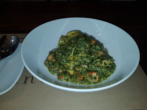 I have visited Wine Connection two times in the past month and on my first visit, I had a ''ham and mushroom'' pizza with the garden salad and a Pepsi Max. On my second visit, I had Pappardelle Pasta with Salmon and Spinach Cream sauce along with the garden salad and Pepsi Max.