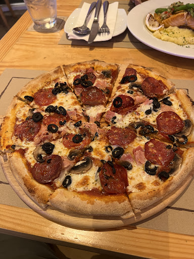 First, they are having a nice lunchtime promotion for 239 Baht. You can choose a pizza or pasta main dish and it comes with a garden salad and a soft drink.