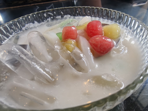ตบท้ายของหวาน บัวลอยเผือก เป็นของแช่แข็ง แต่ขนมสาทู ทำสด ดูจากน้ำกะทิที่ต่างกันเลย