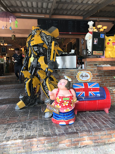 This is the only restaurant located right in front of the Ranong hot springs. The place is spacious, though in my opinion, the decor doesn’t quite match the setting, with flashy statues of robots and comic book characters. The food is good, the prices are fair, and the staff is friendly and always ready to help. We mostly had seafood, as that’s what the menu focuses on, and I must say the taste and cooking were spot on—better than many other places I’ve tried in Ranong. The flavors are quite accessible, not overly Thai, which might appeal to some. It’s a great choice for both adults...