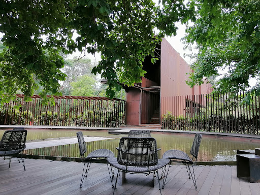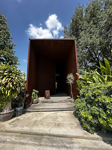 Read moreSense of Place..... Wow! At the roadside there's a fence and a big brown box entrance tunnel. When walking in, it's like walking into something from out of space. Incredible space with pockets of lights as you'll see from the photos below. When you come out you're greeted with nice jazz music, an enormous riverside balcony and central pool area. Beautiful shaded by an enormous tree. Lots of different types of seating inside and out. Coffee not the cheapest but good and strong. Also staff very friendly, they even open the door for you. If you're looking for lunch or coffee this is a must visit. It's about 2 hours out of Bangkok and you'll need Google maps to get you there. Once there it'll be hard to leave. Just stunning in its entirety. Bring your camera as its a phographers dream place to do some...