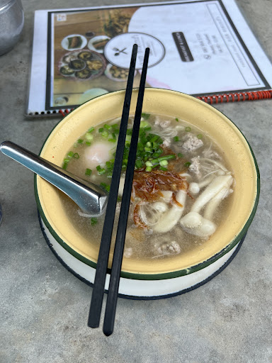 Read moreЭто божественно. Уже месяц страдала от того, что не могла найти заведение для завтраков с хорошей качественной едой и приличной атмосферой внутри. Различные сэндвичи 7/11 уже очень надоели, или рис с курицей. А здесь рай. Такого вкусного супа со свининой я ела, пожалуй, только во Вьетнаме, в Таиланде не встречала. А еще он по вкусной цене - 40 Батт. Жаренные Дим самы тоже на уровне, внутри фарш из свинины и ничего кроме - 30 бат. Соуса для смешивания и настройки вкуса блюда под себя идеальны. Если будете брать суп или Дим самы, обязательно смешайте: соевый соус + водичка с перцем (кисленькая) + соус из железного ведра (вы поймёте про что я говорю). Благодаря этому вы получите непередаваемые вкусовые ощущения (не острое). Так же как вы приходите, сразу приносят чайничек с теплым чаем, он то же очень вкусный