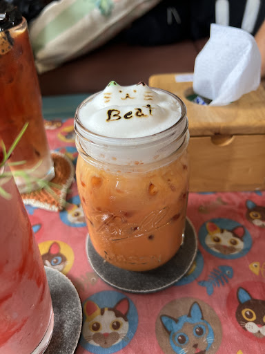 We ordered the option of one drink + time in the cat area. For drinks we got Thai teas and a strawberry smoothie.