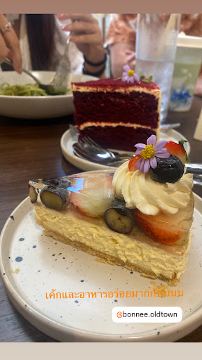 เมนูน่ากินหลายเมนู วันนี้ เราเลือกดื่ม Matcha Strawberry (130.-) กับเค้ก Basque Burnt Cheese Cake 🧀 (145.-) อร่อยสดชื่น ชอบเยลลี่ที่เคลือบผลไม้เต็มๆ ชีสรสชาติชี๊สชีส เพื่อนสั่ง Red Velvet (155.-) มาทานด้วยกัน ก็อร่อยหวานกำลังดี