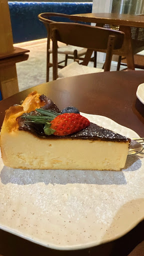 There are many delicious options on the menu. Today, I chose the Matcha Strawberry (130.-) and Basque Burnt Cheese Cake (145.-). Both were refreshing and delicious, and I loved the jelly coating the fruit. The cheesecake had a rich, cheesy flavor. My friend ordered the Red Velvet (155.-) to share, and it was perfectly sweet.