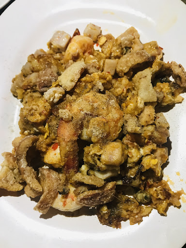 When we got a table, before 7 PM, the server doesn't show up on the menu and just tells us what they have by Thai. We misunderstood the menu. Yes, we are not local from Phuket and we never visit here before. Only we watched many videos on Youtube. We rent a car for visiting many good local restaurants and here was our most expected place. We didn't know that we can see the menu with pics in front of the food cart. I couldn't see the menu well from the front side because the oil was flying to customers by a fan. It causes coughs to every customer and passenger. I’m so sorry to ask changing the order but I see and listen to that staff's face and talk to each other. I hear that the woman main chef said “why to try to change order” the other staffs, one of the guys who cooked behind and one server one young girl, gesture to make feeling bad. We wanted to go out at that time but we were waiting because already we tried to visit another place for serving the same menu but there was closed, yes many restaurants close because of the COVID-19 issue, and we felt tired. The first time we ordered two dishes but I ordered three dishes because I felt that if I hesitate to choose the menu they gonna says something worst to us. Anyway, we got three dishes but we recognized that we ordered the same base from our dishes only difference is toppings. I expected a crispy one but everything was wet. the shell was smelly and fried pork skin has hair. We got a table in the first place from the food cart so flying oil comes to us. I start coughs and couldn't take dishes. We tried to change the table during waiting dishes but we couldn't tell them to that because we don't want to hear bad telling from staffs again. We just make a box and bring back to the hotel and took these. And I write this review at night time because we can not sleep from stomach pain and go to the toilet. There was look so dirty. I think so the staffs are felt so tired ‘it's time to close the store and back...