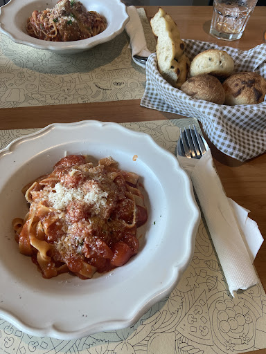 In addition, the service was friendly and prompt. We enjoyed coloring as we waited for our food to be prepared. And the rain and jazz music created a lovely ambiance! We are already planning on returning soon. I am a sucker for homemade pasta and I might need to try the tiramisu that comes in cute tins!
