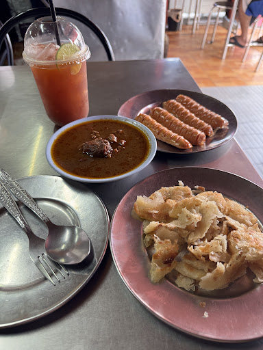 Dishes we tried: • Roti with Fried Egg: Crispy yet soft roti served with a perfectly cooked fried egg. Each bite is a reminder that simplicity can be truly satisfying. • Beef Curry: Rich and flavorful curry with a bold taste of spices. The beef isn’t melt-in-your-mouth tender but has a satisfying chewiness that adds character. • Massaman Chicken Curry: Sweet and creamy with a delightful aroma of spices and peanuts. The chicken is tender, and pairing it with roti makes every bite irresistible. • Fish Curry: Smooth and balanced with a slight tanginess that adds a refreshing touch. The fish is fresh and firm, bringing the sea’s essence to the table. • Hot Tea: A small cup of southern-style tea with a mild, aromatic flavor. Not overly sweet, it perfectly complements the meal.